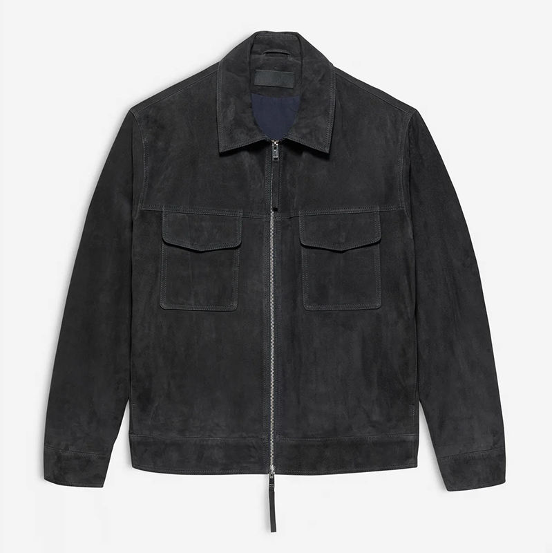 Personalizado para hombre Boxy gamuza auténtica capa superior piel de cabra bombardero chaqueta de cuero con la mejor calidad