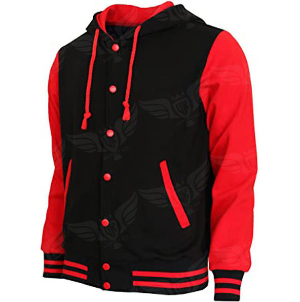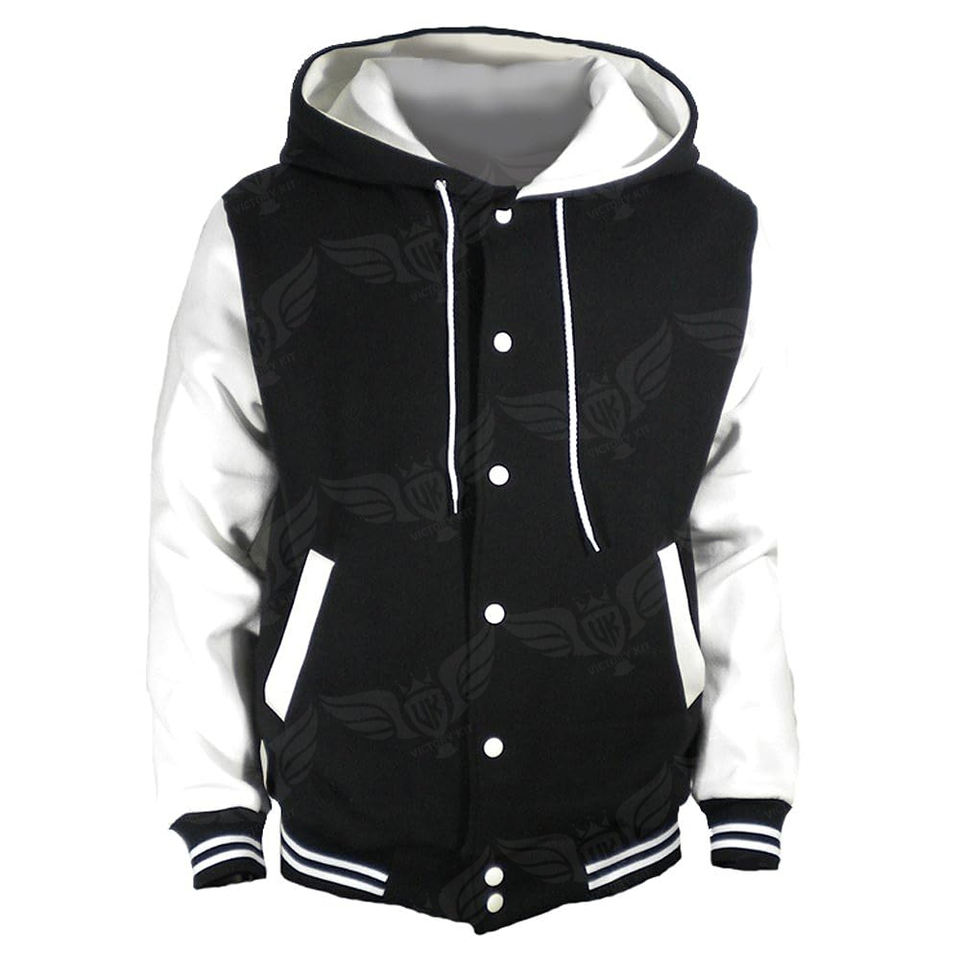 Chaqueta Varsity Personalizada para Hombre con Capucha, Chaqueta Bomber con Botones a Presión y Bloques de Color, Sudadera Casual Estilo Streetwear