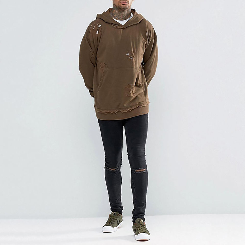 Sudaderas con capucha personalizadas para hombre, rasgadas, lisas, lavadas
