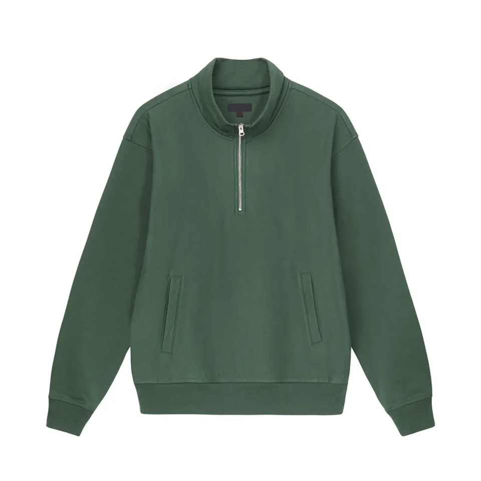 Sudadera con Capucha Personalizada para Hombre, Estilo Rue Porter, Media Cremallera, Cuello Alto Simulado, Felpa, con Cremallera 14, para Correr en Invierno