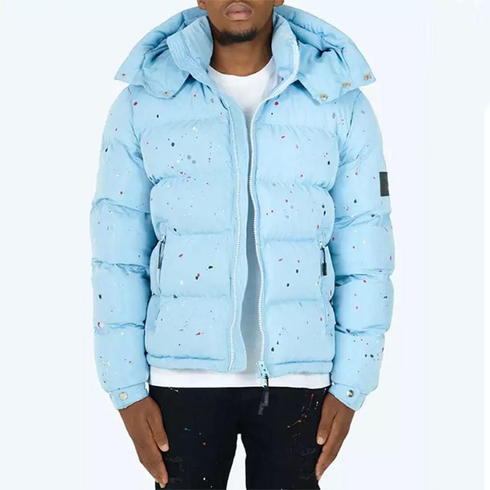 Chaqueta Acolchada Personalizada para Hombre, Color Azul Cielo, con Capucha, Abrigo de Invierno Cálido, Cortavientos, con Cremallera, Embalaje en Tambor, Moda
