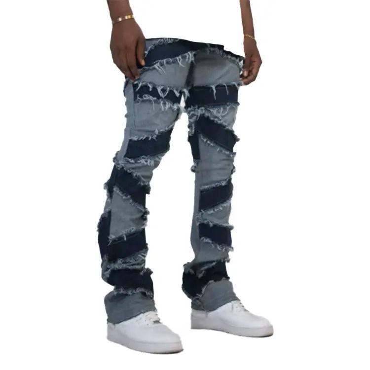 Pantalones desgastados rasgados de cintura alta de lona impermeables y transpirables de corte regular para hombre personalizados OEM al por mayor