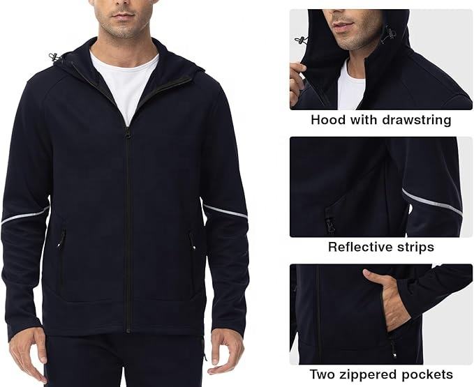Conjunto de chándal con estampado sólido y cremallera completa Unisex personalizado, chaqueta deportiva para correr en contraste, pantalones con cordón, bolsillos con cremallera de 2 piezas Plus