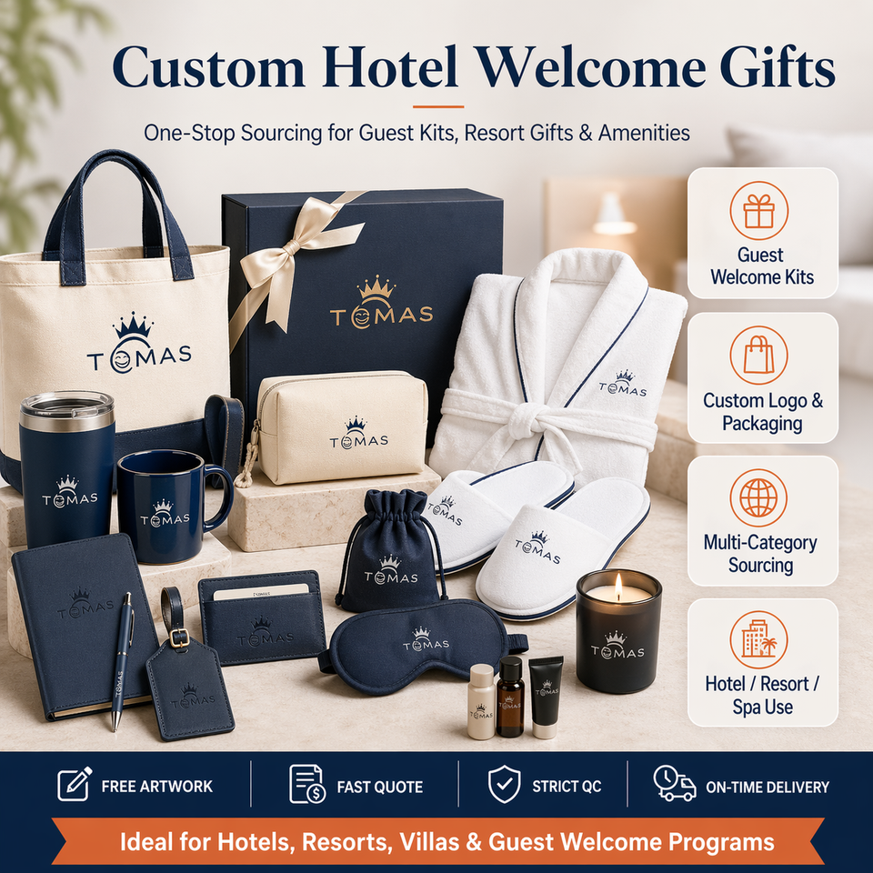Set de Regalo de Bienvenida para Huéspedes de Hotel y Resort, con Logotipo Personalizado, Bata, Pantuflas, Bolsa de Aseo, Artículos de Regalo VIP