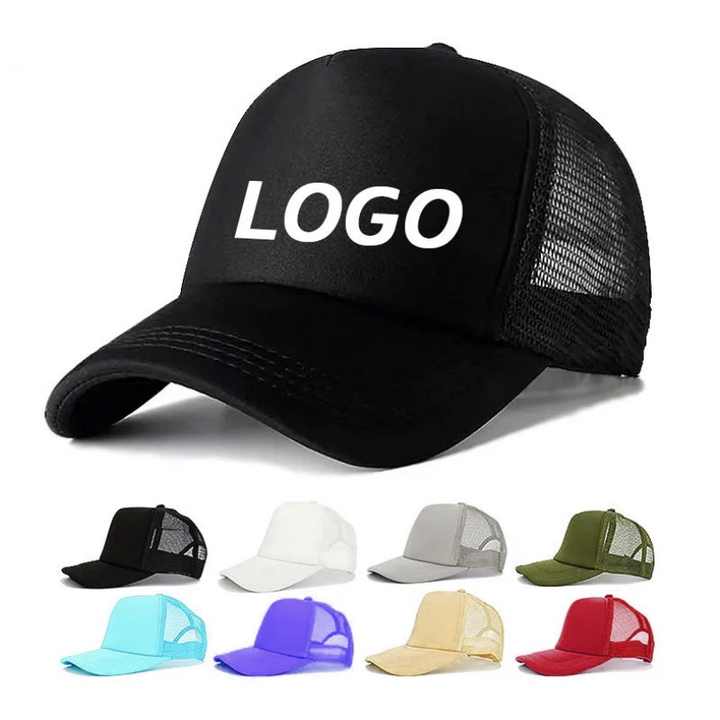 Gorra de malla personalizada, gorra trucker de 5 paneles, gorra de béisbol de algodón con banda, gorra de golf transpirable y ajustable para exteriores.