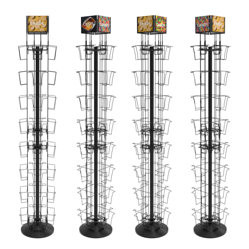 Custom Metal Black Multi Tier Rotating Comic Book Display Rack for Retail Stores
