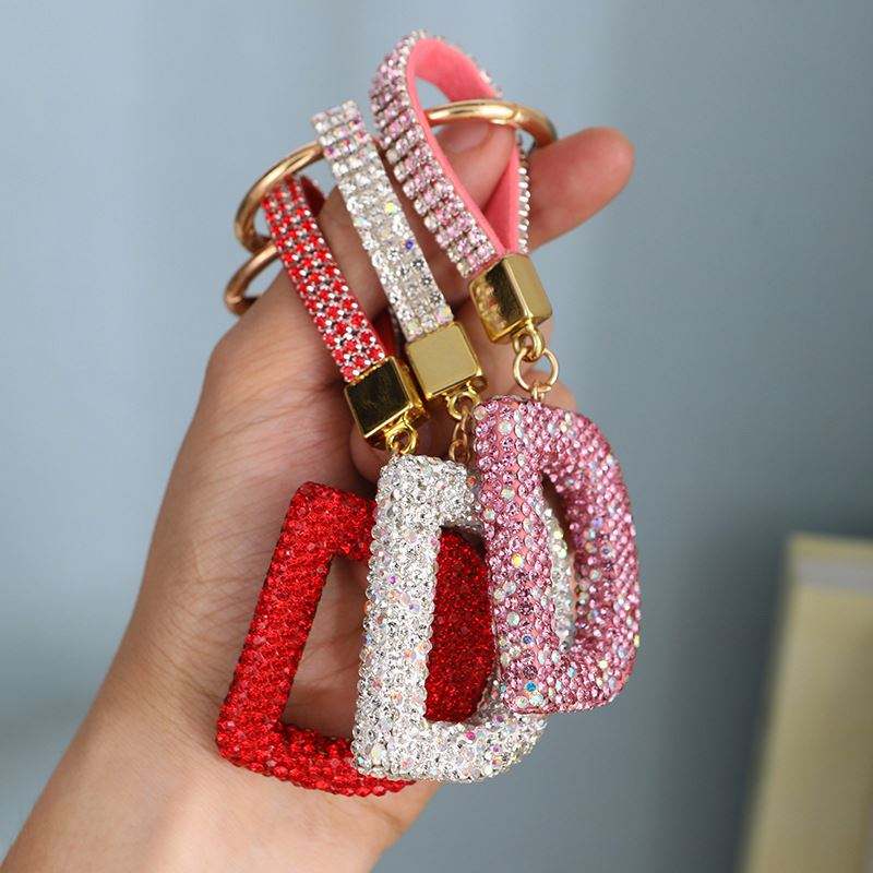 Llavero Personalizado de Metal con Letras de Diamantes Brillantes y Pedrería para Coche