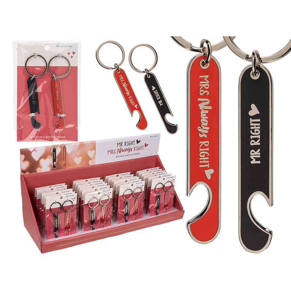 Juego de llaveros metálicos personalizados Mr. Right & Mrs. Abridor de Botellas Always Right, Estilo Moderno con Serigrafía, Material de Aleación