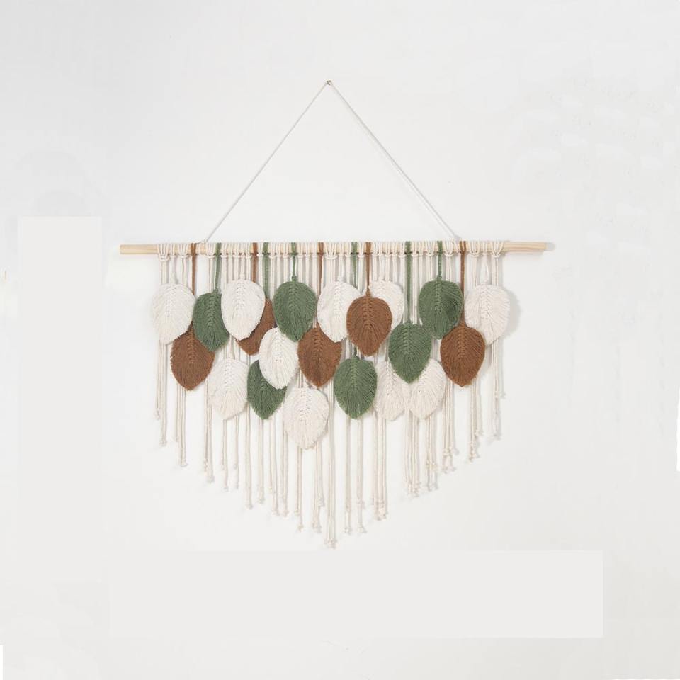 Tapiz bohemio tejido de hojas de Metal personalizado Art Deco para colgar en la pared para el hogar, dormitorio, casa de huéspedes, decoración de pared táctil Natural, cumpleaños