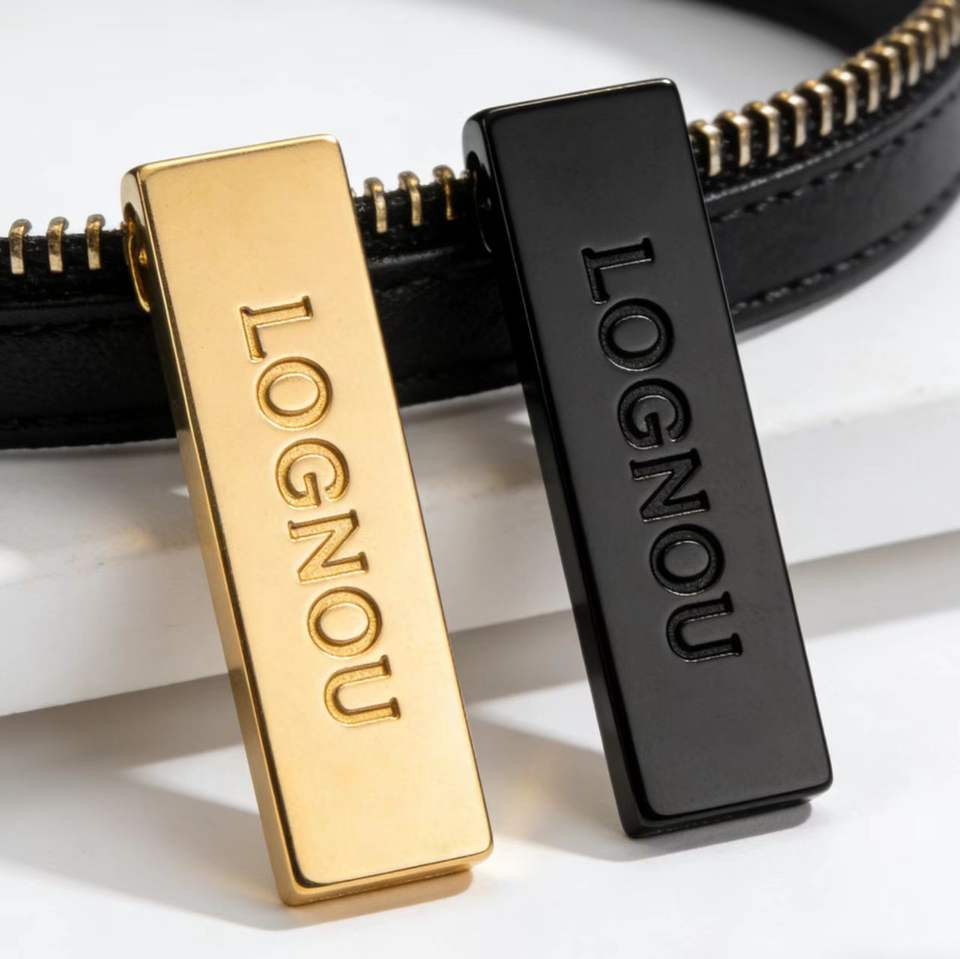 Etiquetas de Metal Personalizadas con Logotipo, Etiquetas Rectangulares para Ropa, Accesorios para Bolsos, Diseño de Moda con Borde Cortado a Láser, Marca Grabada