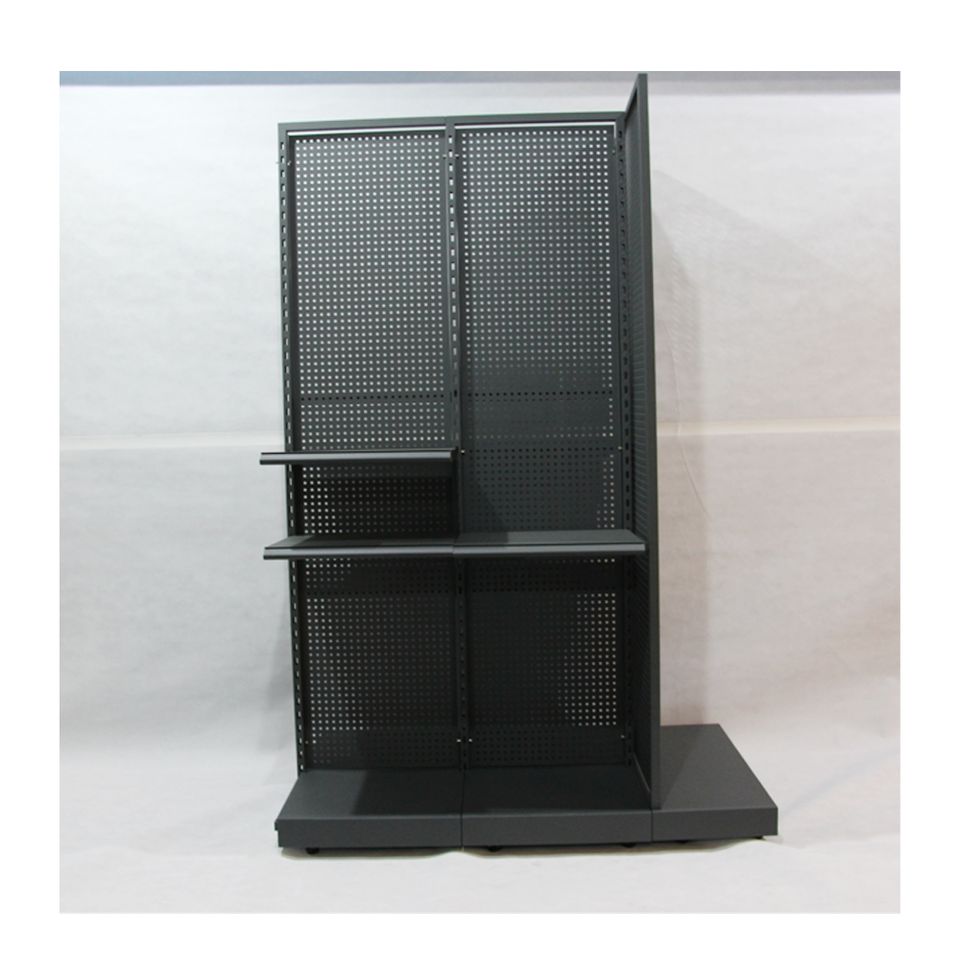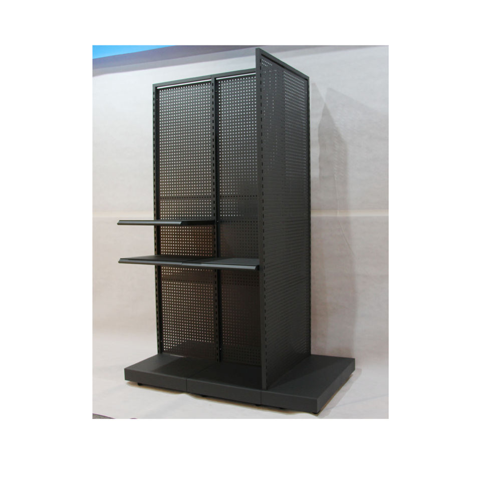 Custom metal multi tier double side black island minimarket supermercado rak gondola for merchandise