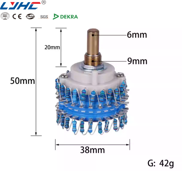 Interruptor Rotatorio de Eje Metálico Personalizado con Terminales PCB, Atenuador de Volumen de Audio para Amplificador de Tubos, Interruptor Rotatorio Sin Cortocircuitos