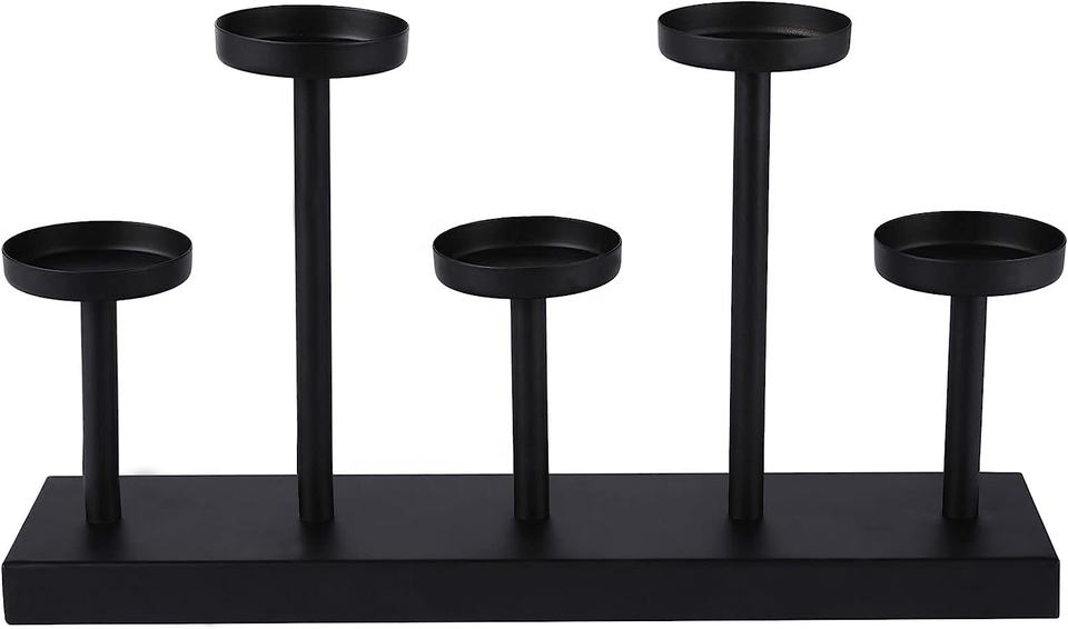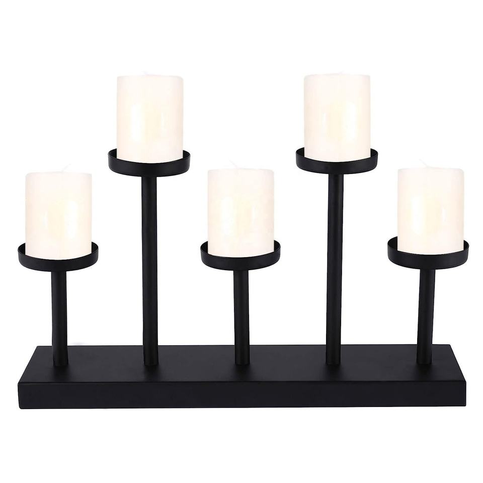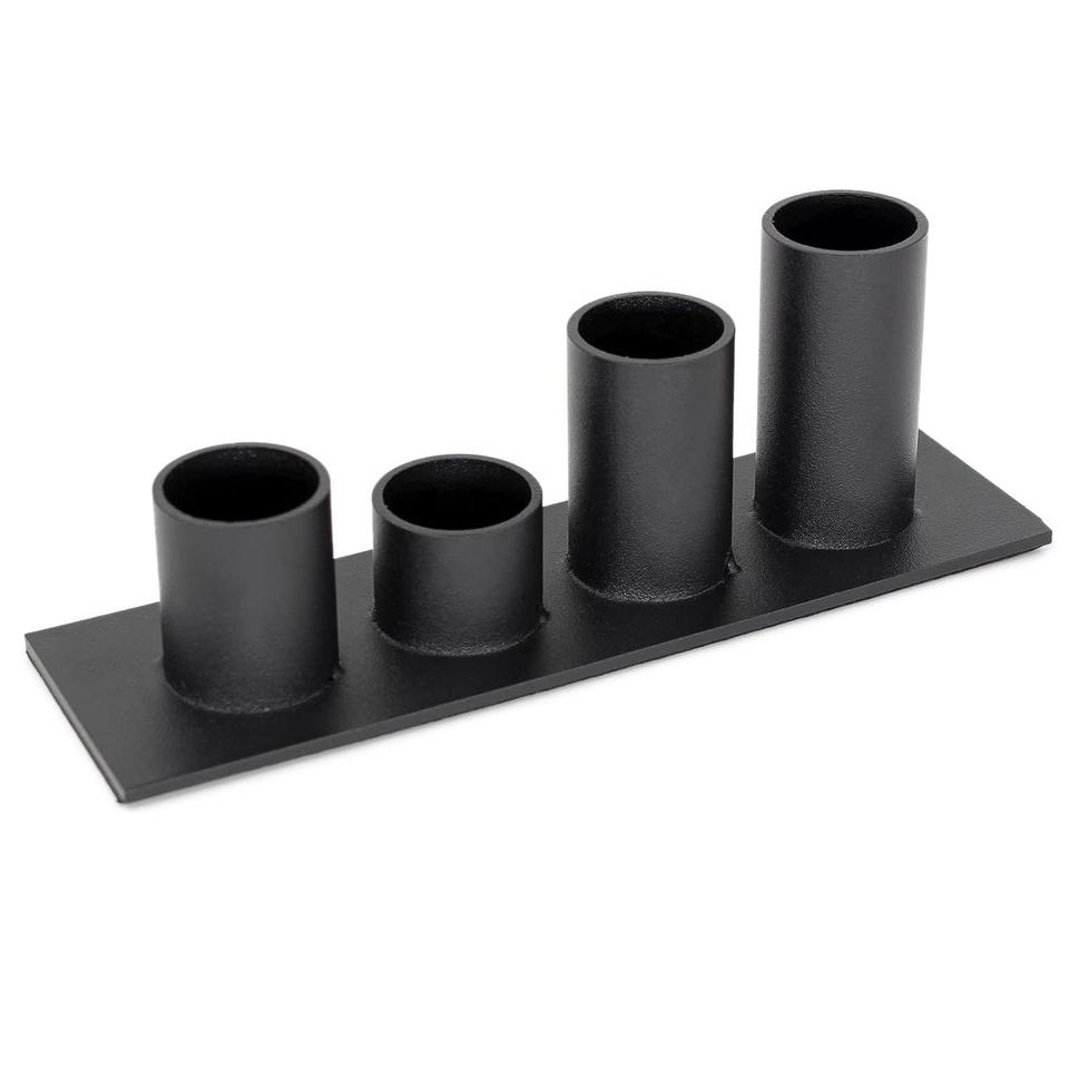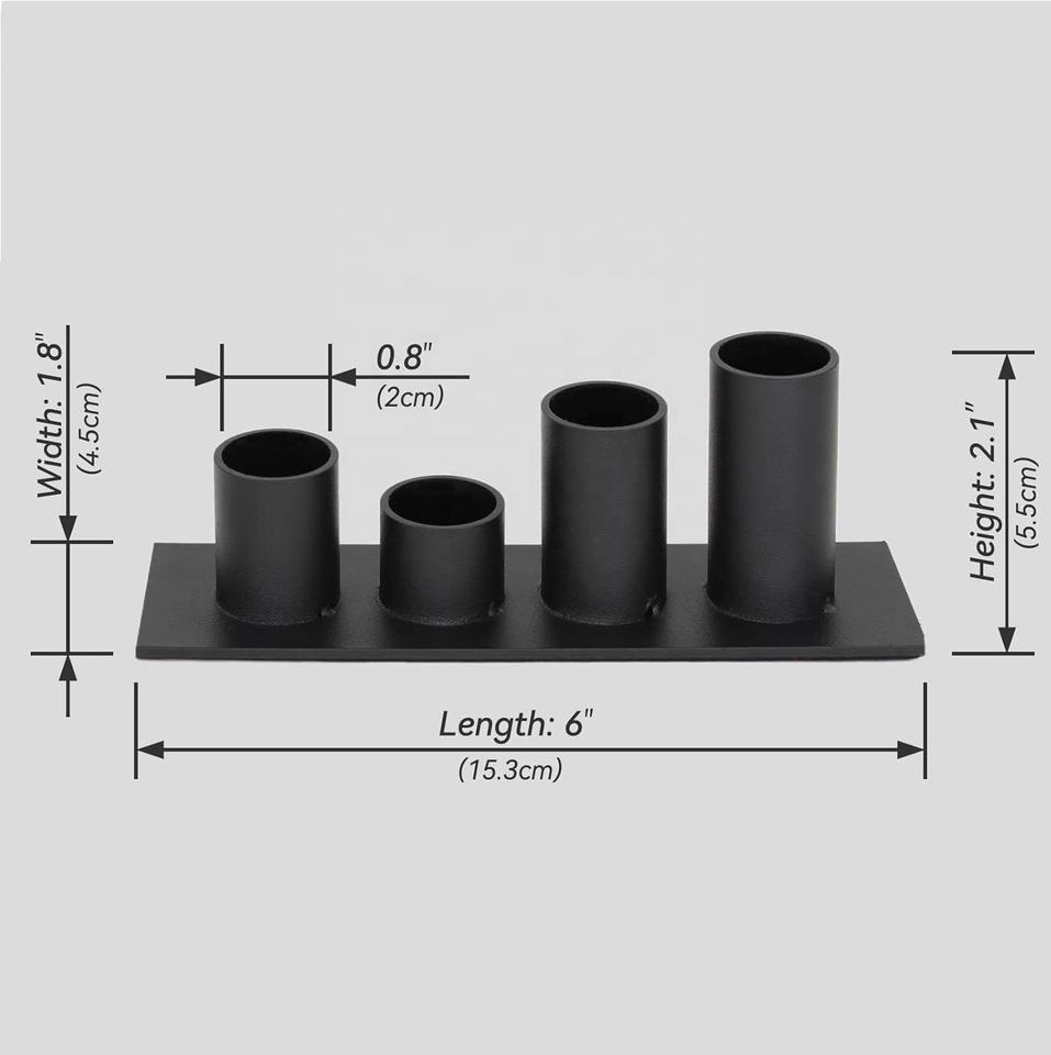 Candelabro decorativo de mesa de Metal personalizado candelabros cónicos únicos de cuatro cabezas con diseño de tubería acabado recubierto de polvo negro