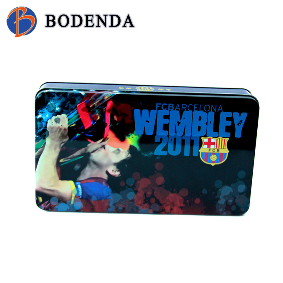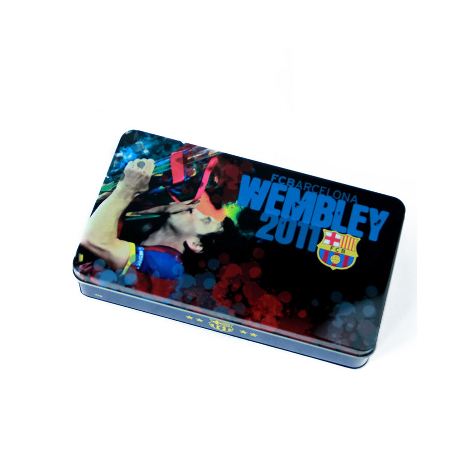 Caja de hojalata de metal personalizada con diseño del FC Barcelona para recuerdos o regalos