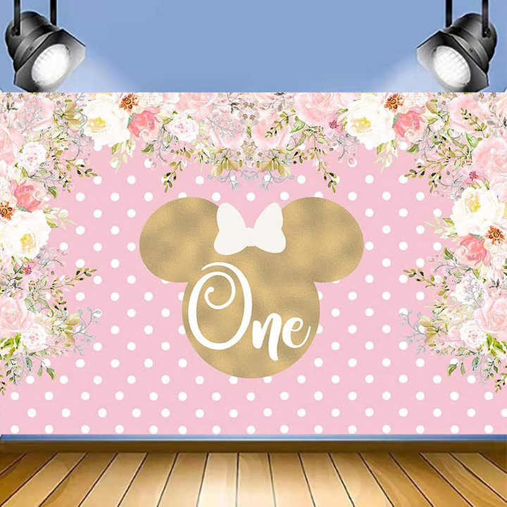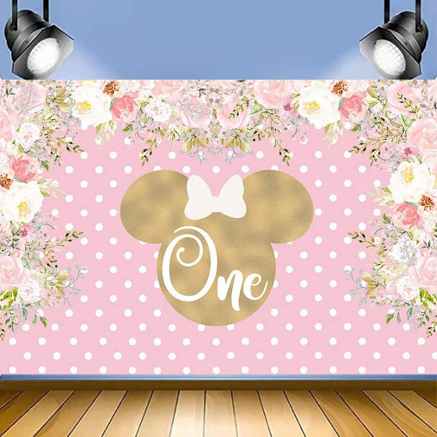Fondo Personalizado de Mickey Mouse o Minnie Mouse con Lazo Brillante para Baby Shower, Fiesta de Cumpleaños de Niñas, Fondo para Fotos, Accesorios para Estudio