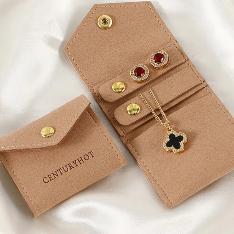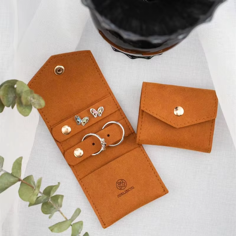 Bolsa de Joyería de Microfibra Personalizada, Rectangular, Ligera, para Regalo, 14*6cm, con Botón, Organizador de Viaje, Enrollable