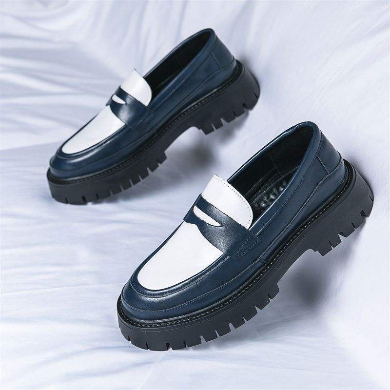 Zapatos de Vestir Personalizados de Microfibra para Hombre, Tallas 38-44, Plataforma Gruesa, Plantilla de PU, Punta Cerrada, Color en Contraste, Mocasines Casuales de Verano y Otoño