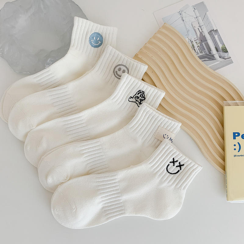 Calcetines personalizados de media pantorrilla para mujer, estilo escolar, bonito bordado sonriente, compresión, logotipo transpirable en el cuerpo para niñas