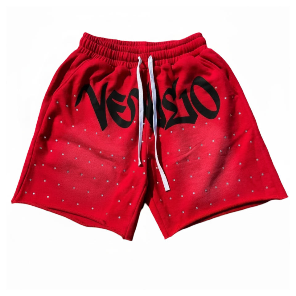 Pantalones cortos de secado rápido sólidos de cintura media personalizados con estampado de pantalla 100% algodón con diamantes de imitación desteñidos por el sol para hombres