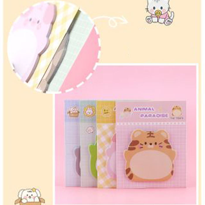Bloc de notas adhesivo de gato de dibujos animados mini animal personalizado con respaldo de tarjeta