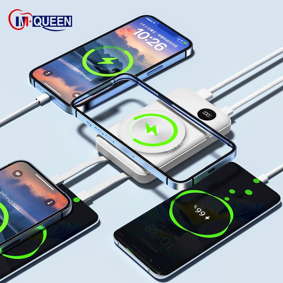 Batería Externa Magnética Inalámbrica Personalizada de 10000mAh/20000mAh, Estación de Carga de Emergencia con Cable Integrado para Teléfono