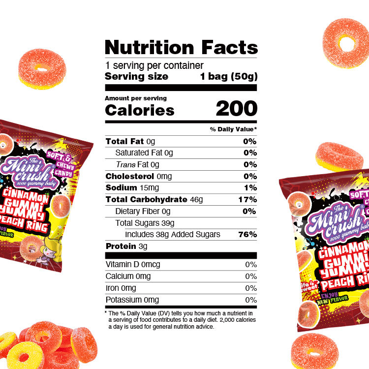 Nombre del producto:Gomita de Anillo de Melocotón con Sabor a Caramelo