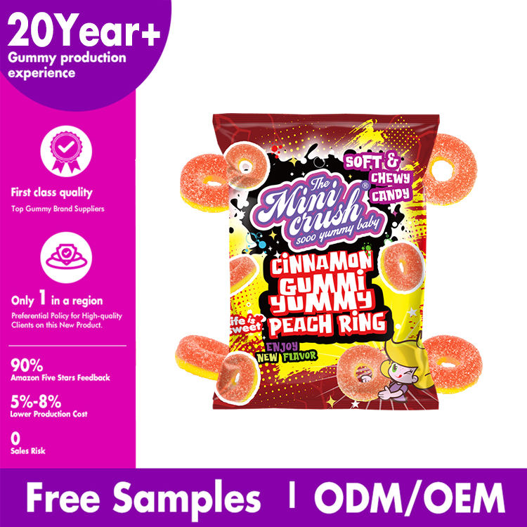 Mezcla personalizada de frutas surtidas, embalaje de regalo, fruta masticable, dulce sabor a caramelo con canela, melocotón, anillo, caramelo, gomoso, sabor afrutado