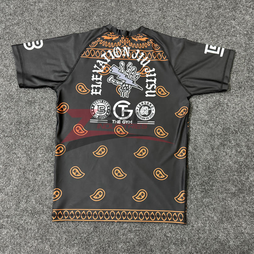 Custom Mma Rash Guards Sublimación Impresión Ultavoilet protección 240 GSM Compresión Grappling Bjj Rash Guards Hecho en Pakistán