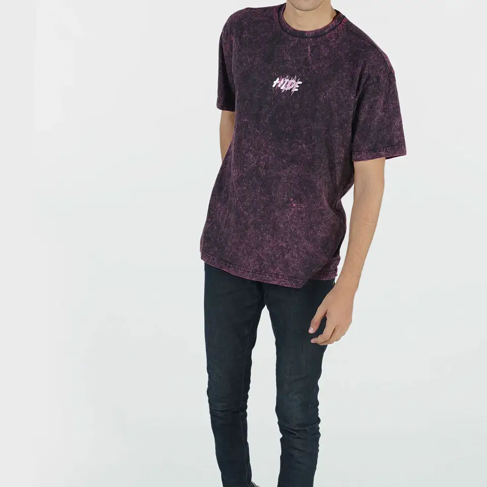 Camiseta personalizada de algodón con cuello simulado para gimnasio, camiseta Vintage Snow Stone Unisex, camiseta de lavado ácido al por mayor
