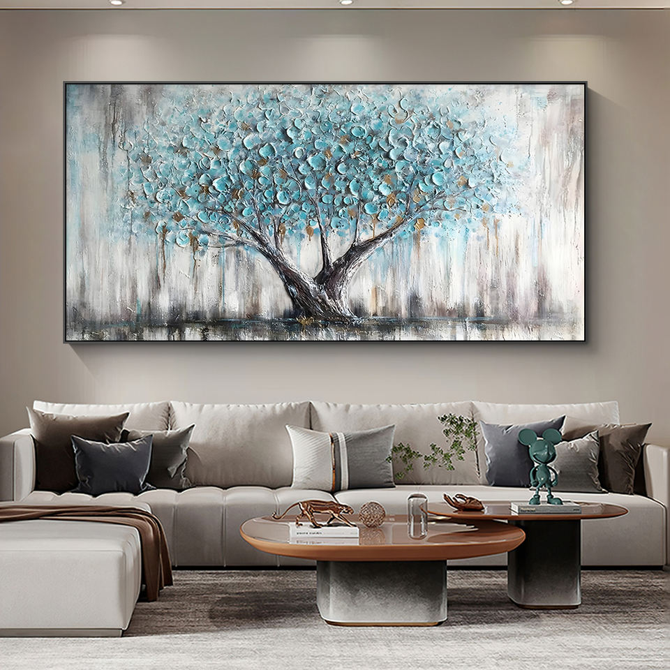 Obra de Arte Moderna Abstracta Pintada a Mano, Pintura al Óleo Texturizada sobre Lienzo de Árbol Grande, Decoración de Pared para Sala de Estar
