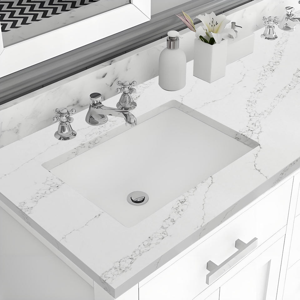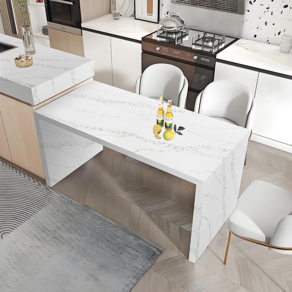 Encimeras de Cocina Modernas de Cuarzo Blanco Personalizadas, Gran Formato, Encimeras Artificiales para Baños, Hoteles, Pisos, Paredes Interiores, Resistentes al Fuego