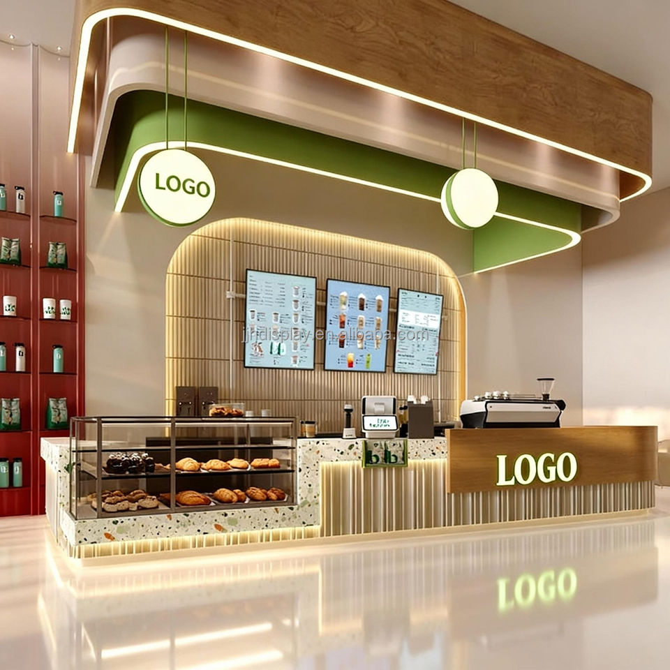 Cafetería moderna personalizada, diseño de interiores, vitrina de madera, quiosco de café a la venta, tienda, Bar, muebles, Mostrador de té y cafetería