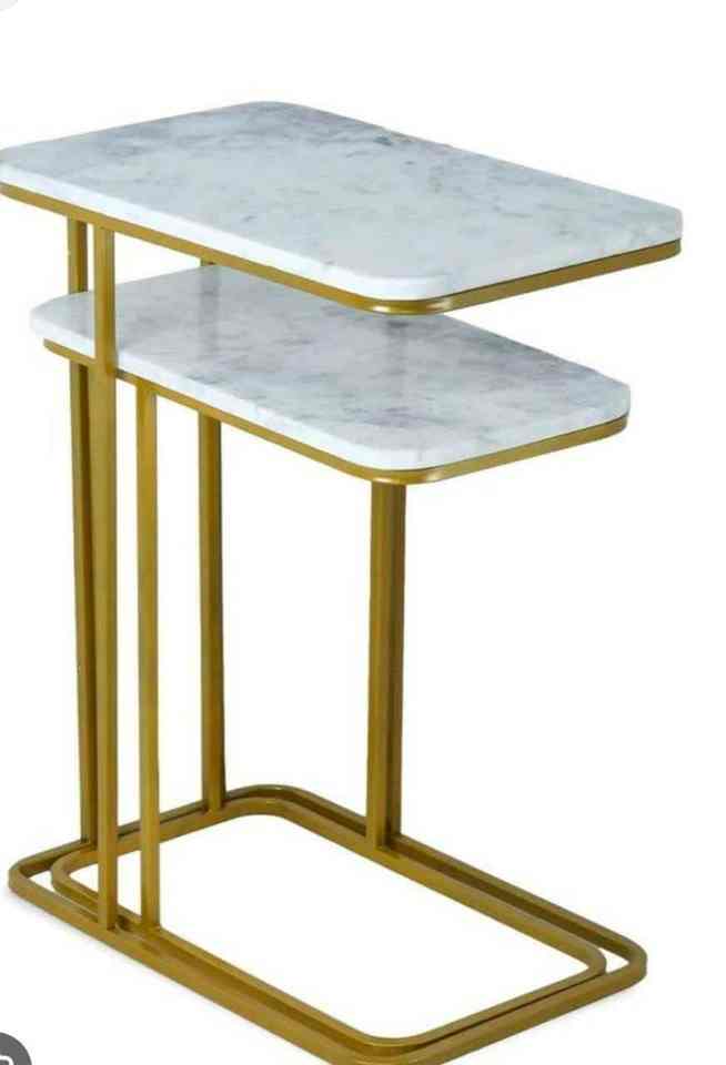 Mesa auxiliar de hierro de diseño moderno personalizada, mesa de centro de mármol blanco para oficina en casa con aplicación de hotel, fabricada en India
