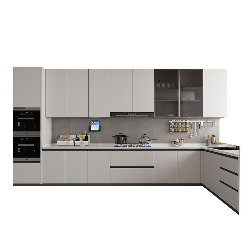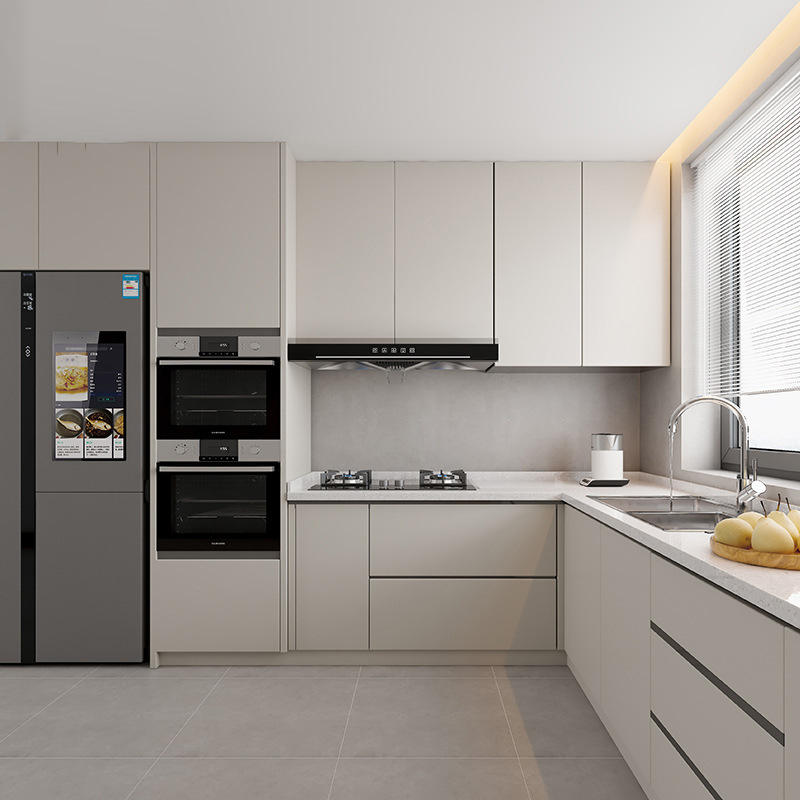 Gabinetes de cocina de melamina en forma de L, muebles personalizados asequibles de gama alta con diseños modernos personalizados usados pequeños y blancos completos de China