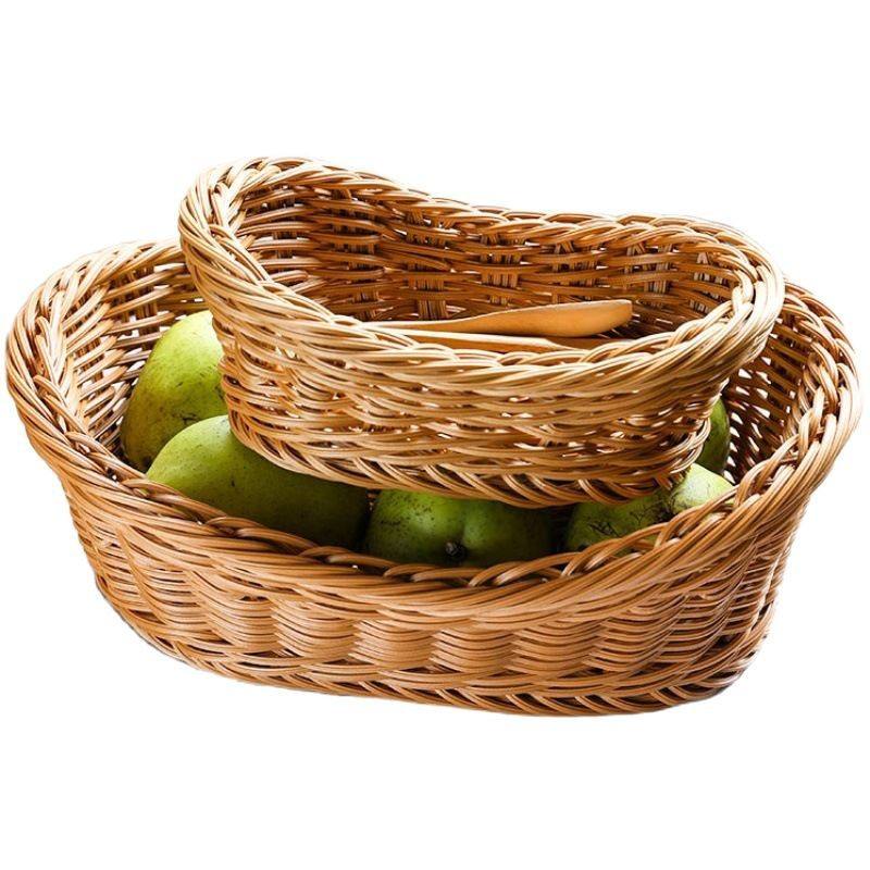 Cesta de almacenamiento de alimentos tejida plato de fruta pequeña de ratán plástico ecológico moderno personalizado
