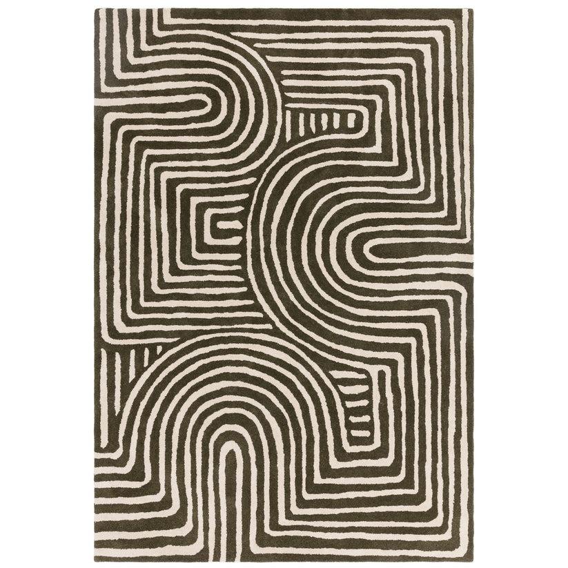 Alfombra de lana geométrica moderna personalizada alfombra con patrón de laberinto con mechones a mano para el hogar, oficina y decoración de Picnic para sala de estar y dormitorio