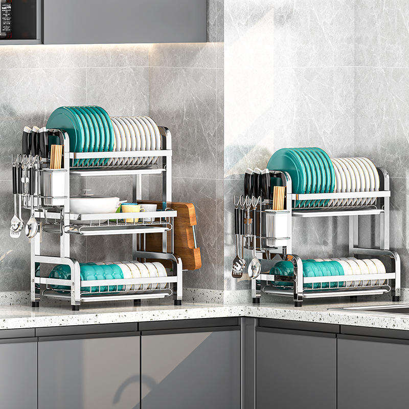 Accesorios de Cocina Modernos Personalizados, Organizador de Platos y Tazones de Acero Inoxidable, Escurridor de Vajilla para Mesa de Cocina