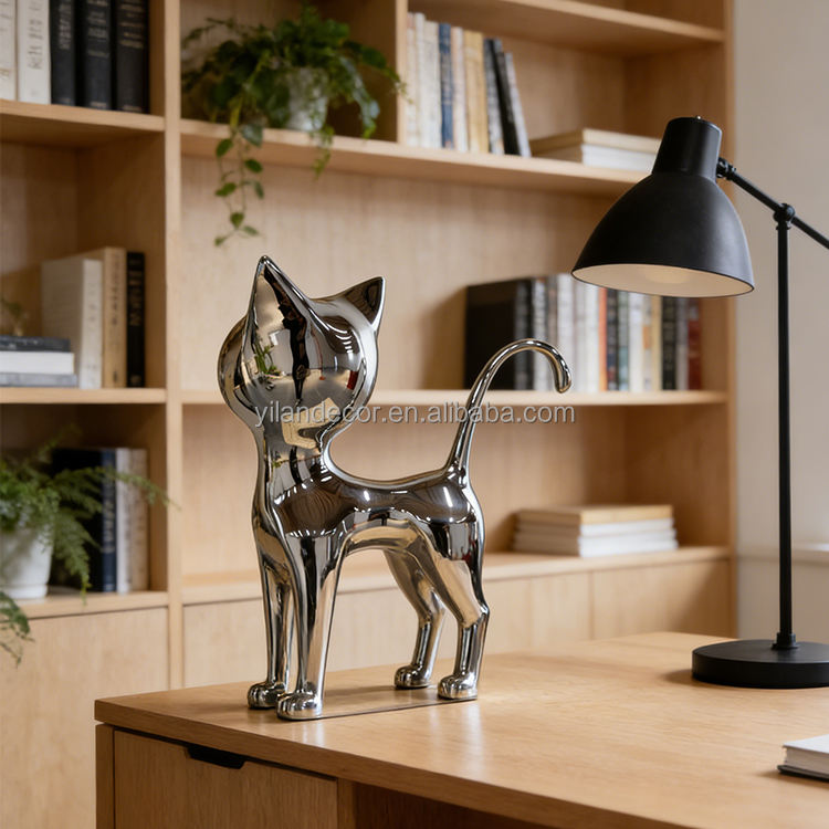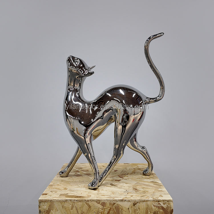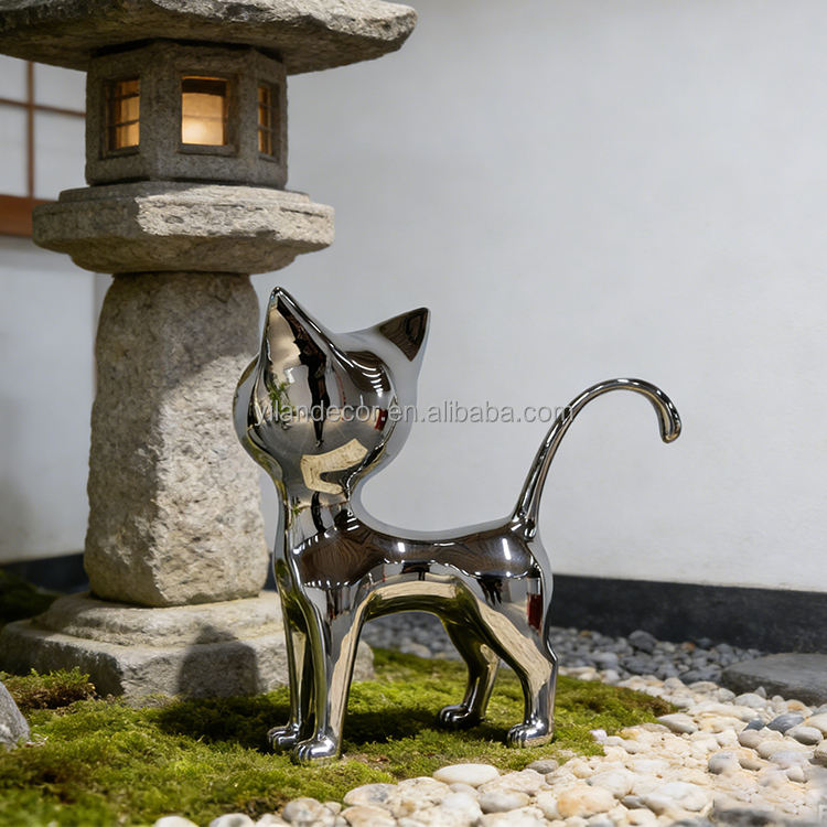 Escultura de Gatos de Acero Inoxidable de Tamaño Real, Estilo Moderno, Decoración de Animales Tallados para Plaza Comercial, Hotel, Jardín, Paisaje Urbano