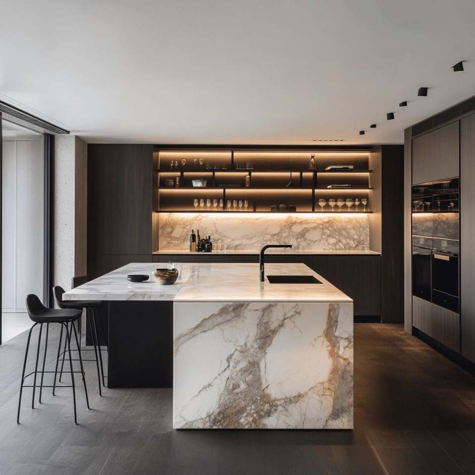 Marco de aluminio con vidrio y losa de piedra