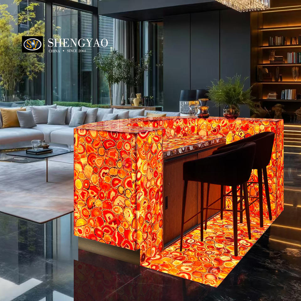 Encimera de barra de ágata de cuarzo de cristal rojo Calcedonia retroiluminada natural