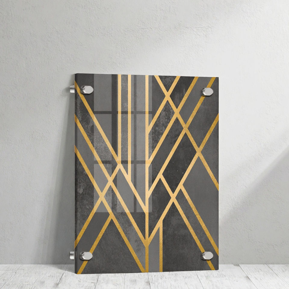 Impresiones de Arte Acrílico Personalizadas, Modernas y Sencillas, con Línea Dorada Abstracta, 5 mm de Grosor, Impresión Digital en Lámina Acrílica Transparente