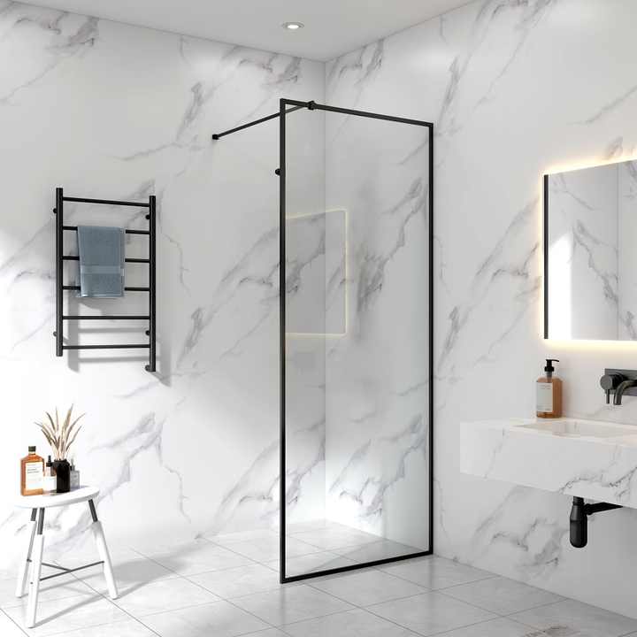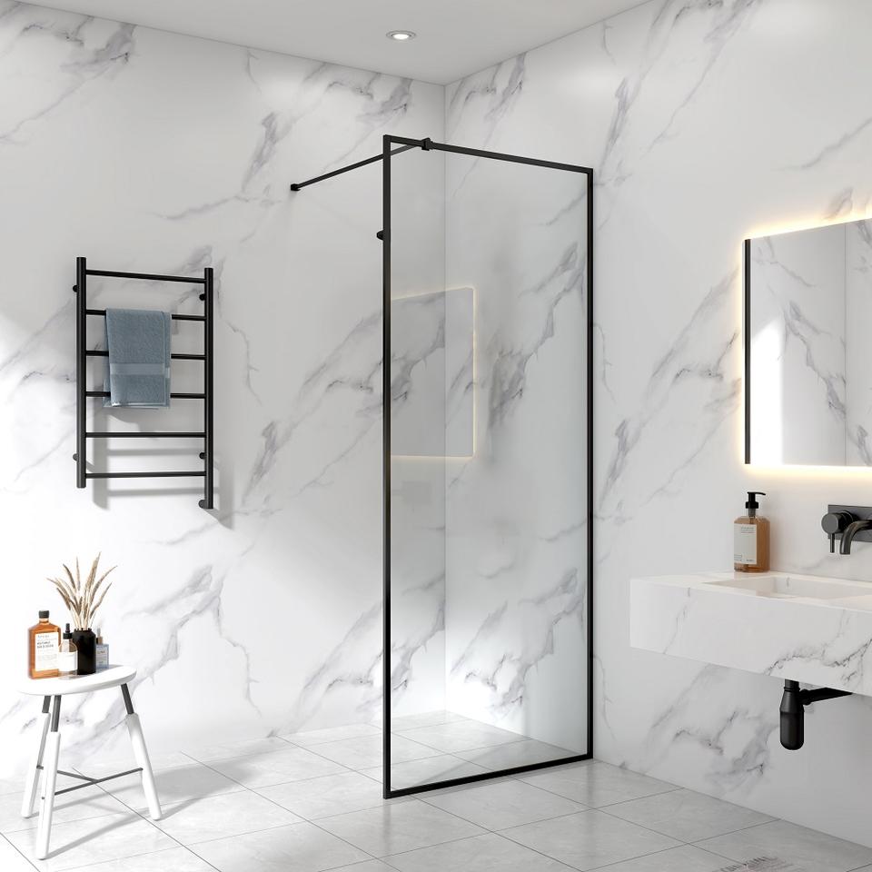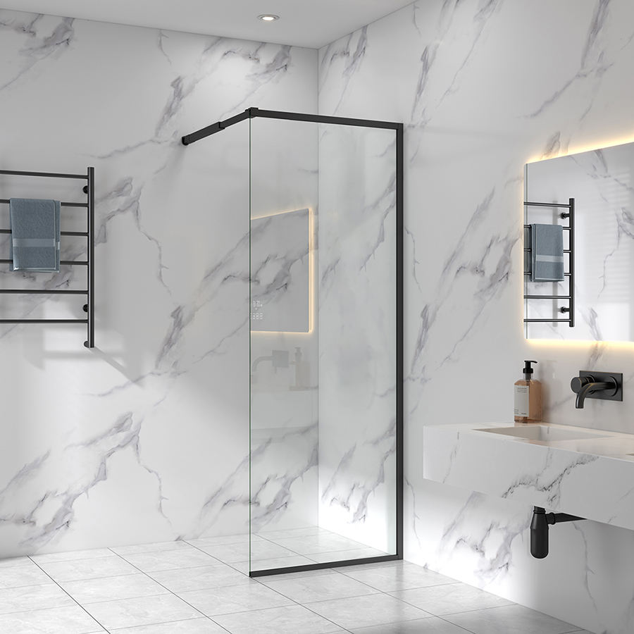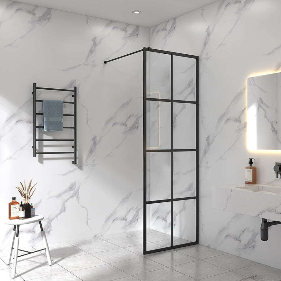 Puerta de ducha moderna personalizada con marco negro Pantalla de vidrio ajustable de 6mm-8mm Marco de aluminio negro personalizable