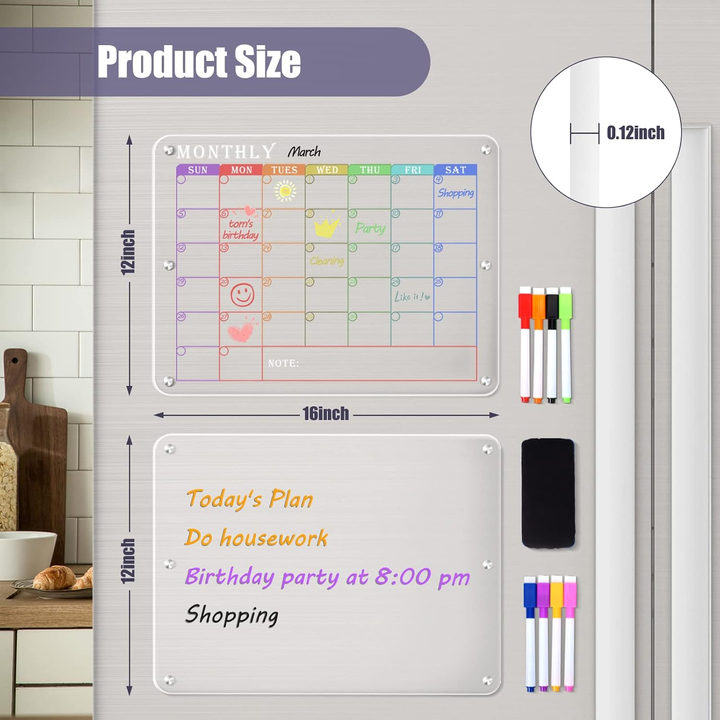 Planificador Semanal/Mensual Moderno Personalizado, Pizarra Blanca Acrílica de Alta Transparencia para Refrigerador, Adhesivos Magnéticos Reutilizables de Borrado en Seco