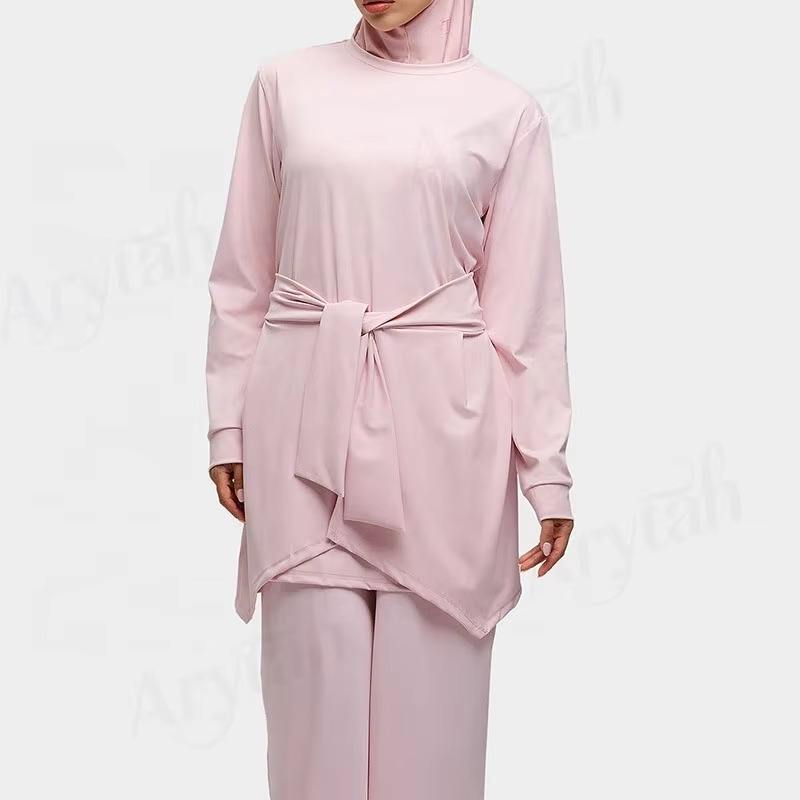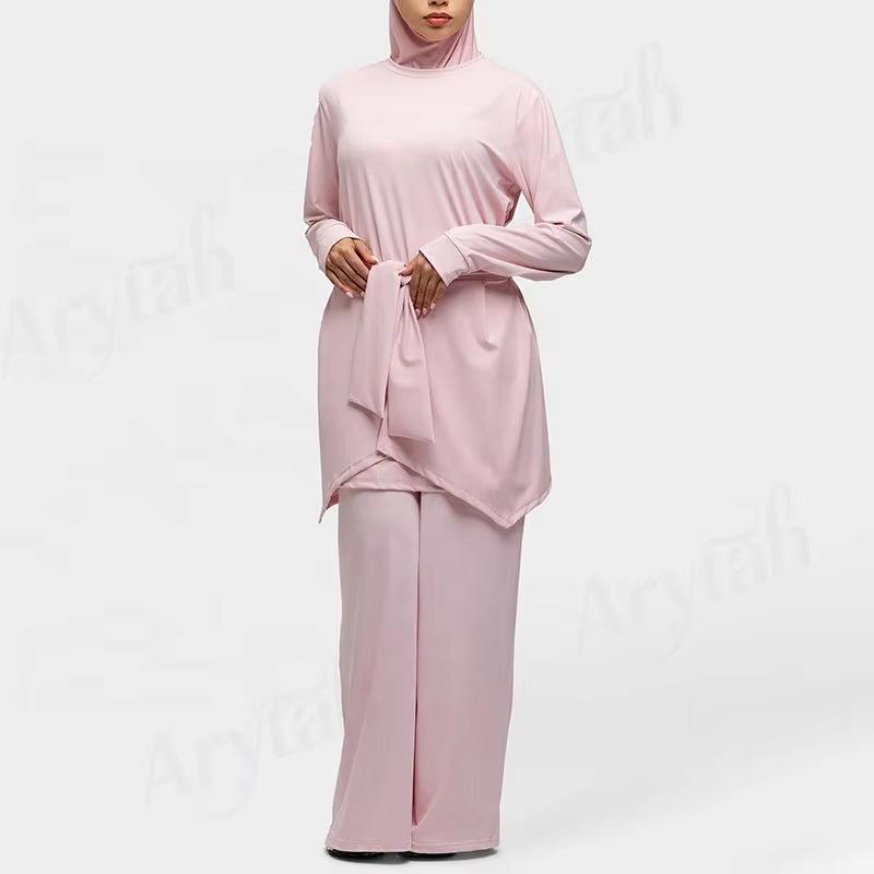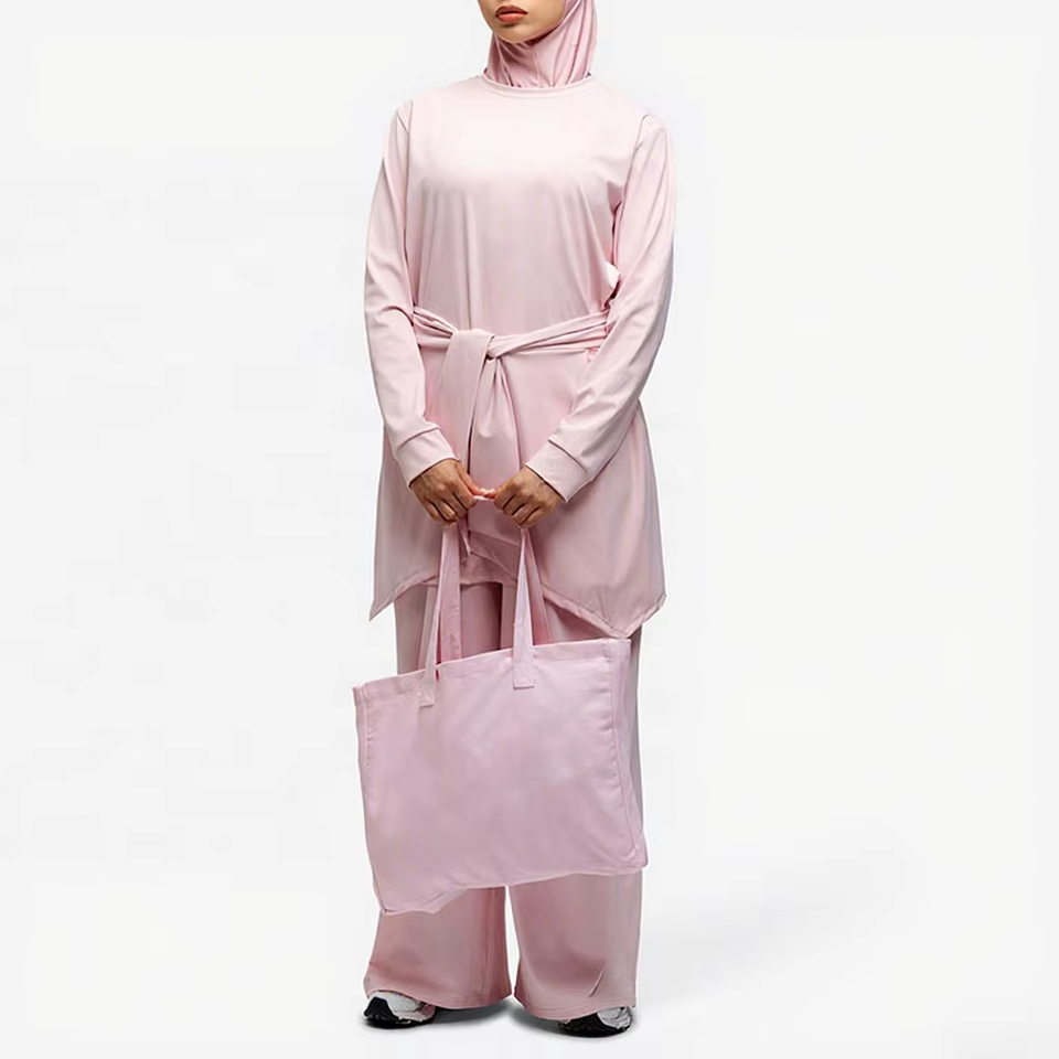 Conjunto Deportivo Modesto Personalizado con Cremallera para Mujer, Diseño con Bolsillos, Conjunto de Gimnasio Musulmán de Secado Rápido, Ropa Deportiva Musulmana para Mujer