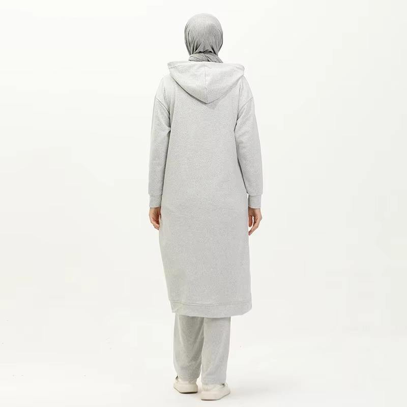 Conjunto Deportivo Modesto Personalizado con Cremallera para Mujer, Diseño con Bolsillos, Conjunto de Gimnasio Musulmán de Secado Rápido, Ropa Deportiva Musulmana para Mujer