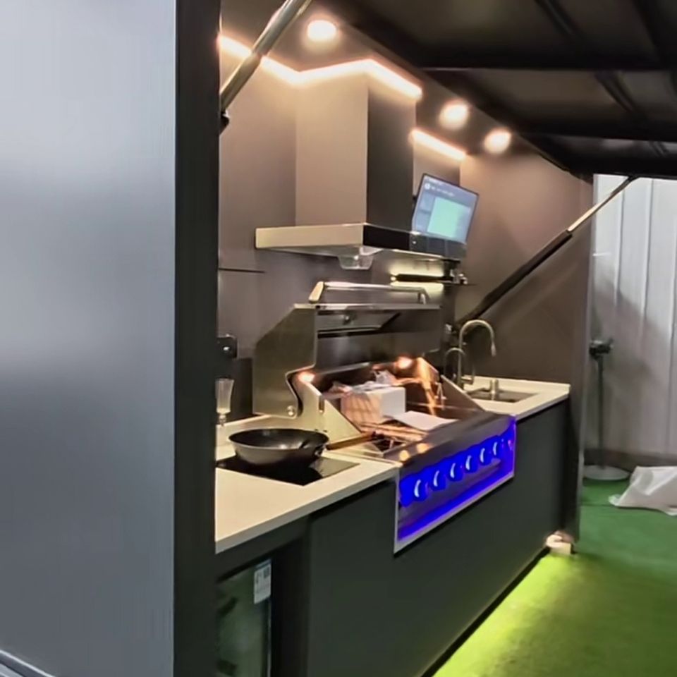 Isla de Cocina Modular Personalizada para Exteriores, de Acero Inoxidable, con Parrilla, Gabinete, Fregadero, Refrigerador, Horno para Pizza y Techo LED para Patio Trasero
