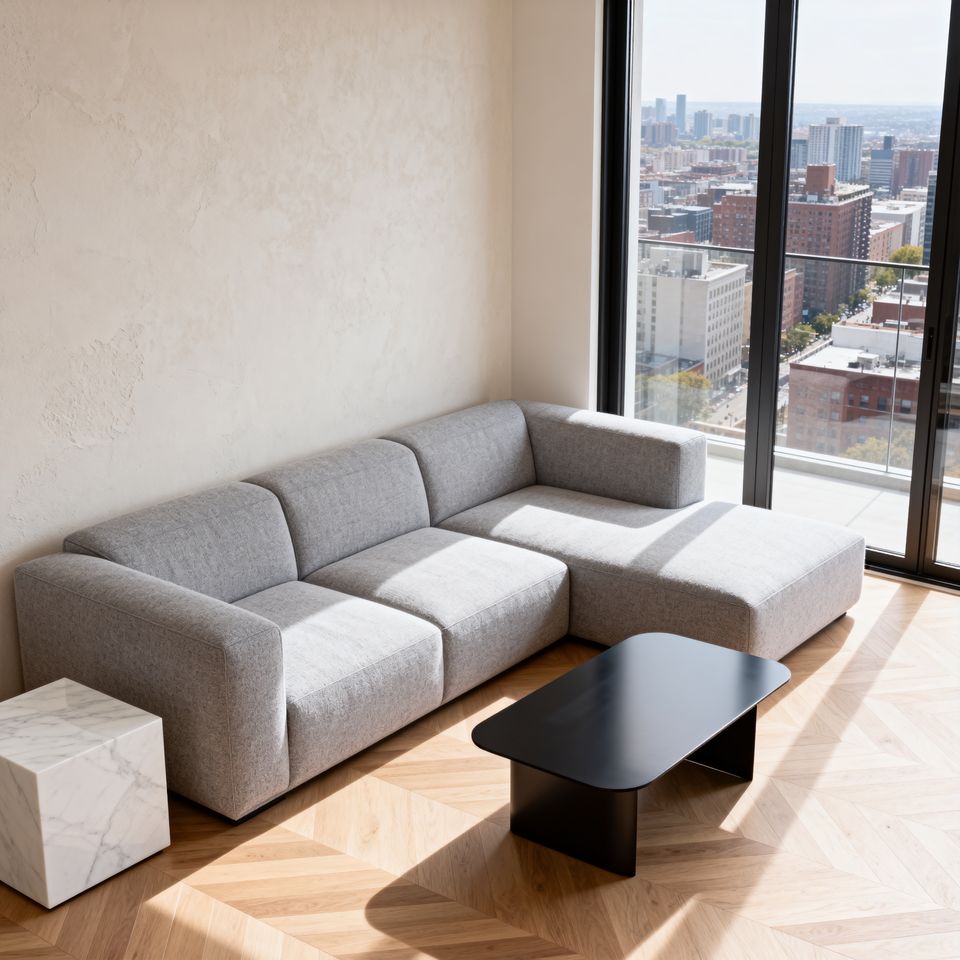 Conjunto de Sofá Modular Seccional Cuadrado Nórdico Personalizado con Estructura de Madera, Relleno de Esponja y Tapicería de Tela, Diseño Ecológico
