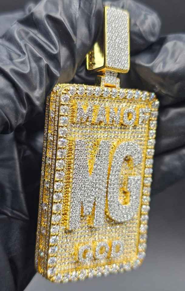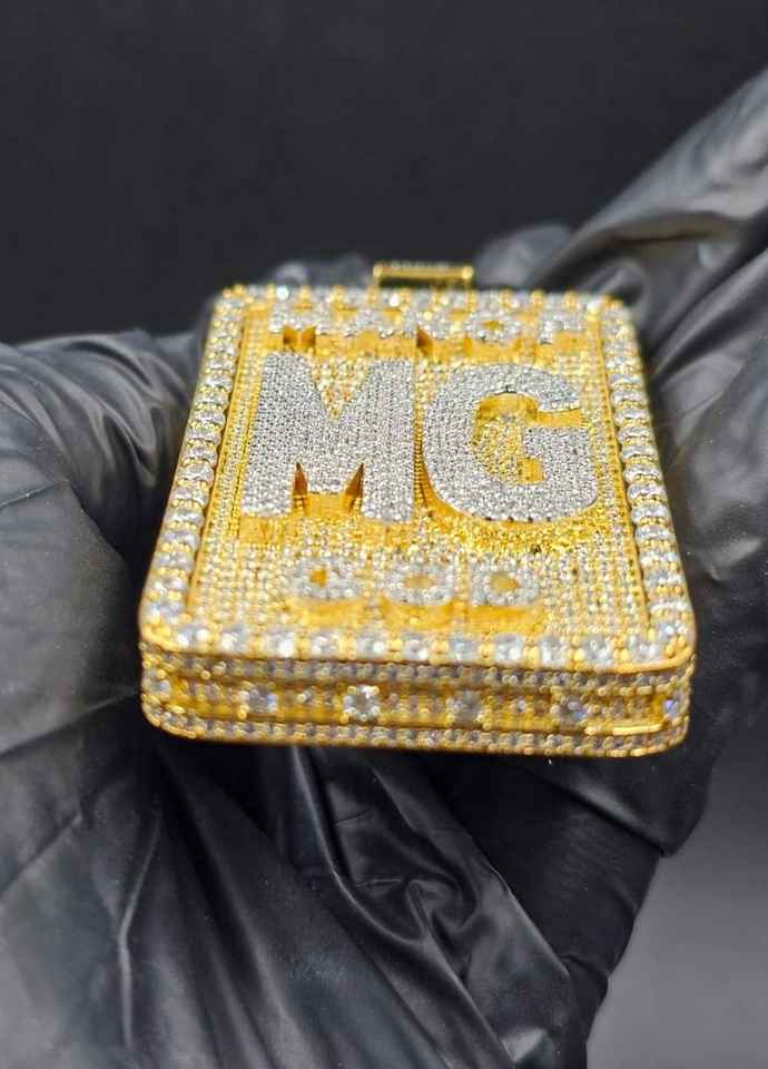 Colgante Personalizado de Lujo con Nombre Inicial en Dos Tonos de Moissanita, Estilo Hip Hop, Plata 925 Chapada en Oro, Certificado, para Hombre