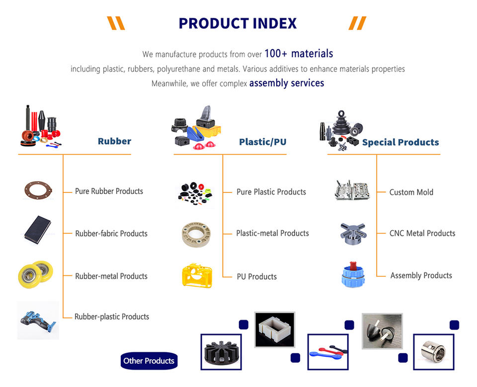 Más de 100 materiales de plástico, caucho y metal