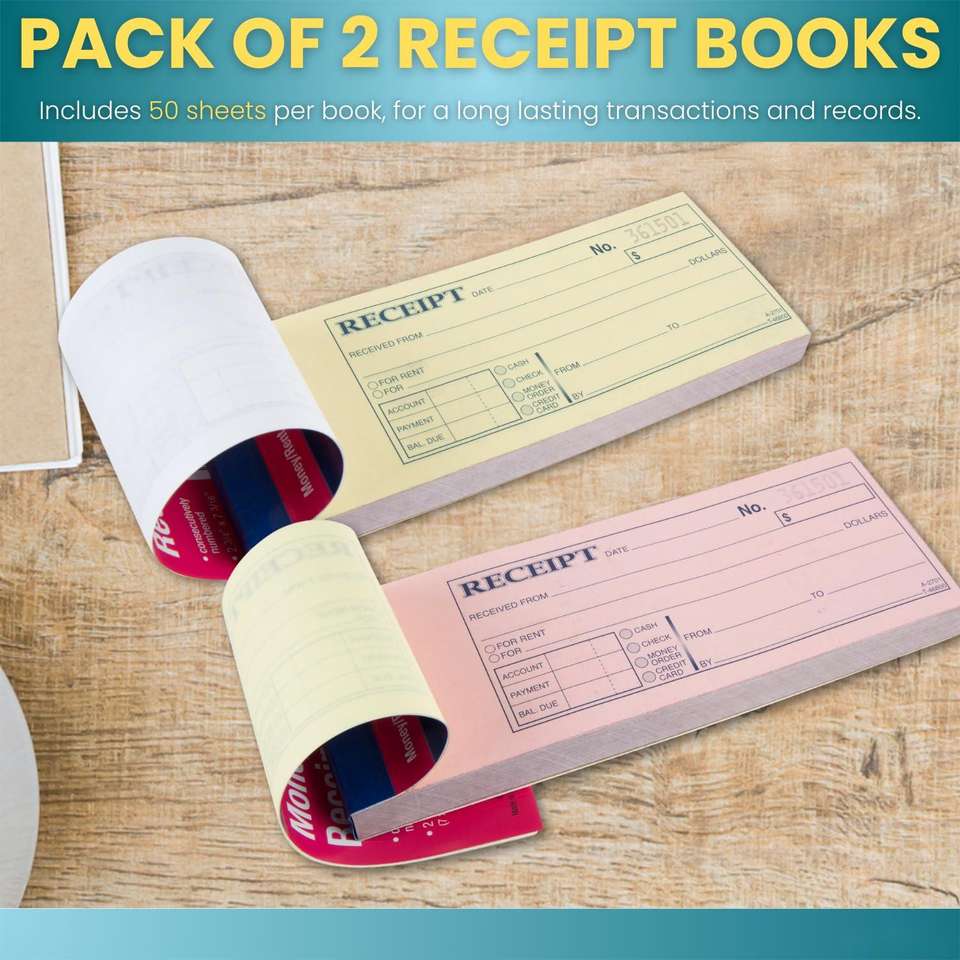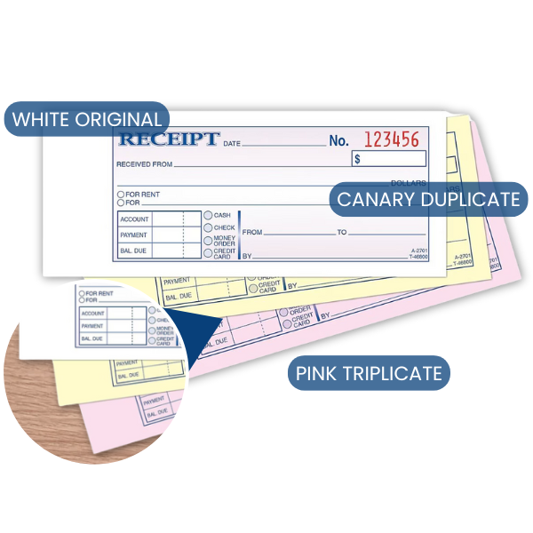 Recibos Personalizados para Dinero y Alquiler, 2-3/4 X 7-3/16 Pulgadas, Formato de 3 Partes sin Carbón, Blanco/Canario/Rosa, 50 Juegos por Libro, 3 Paquetes de Libros NCR
